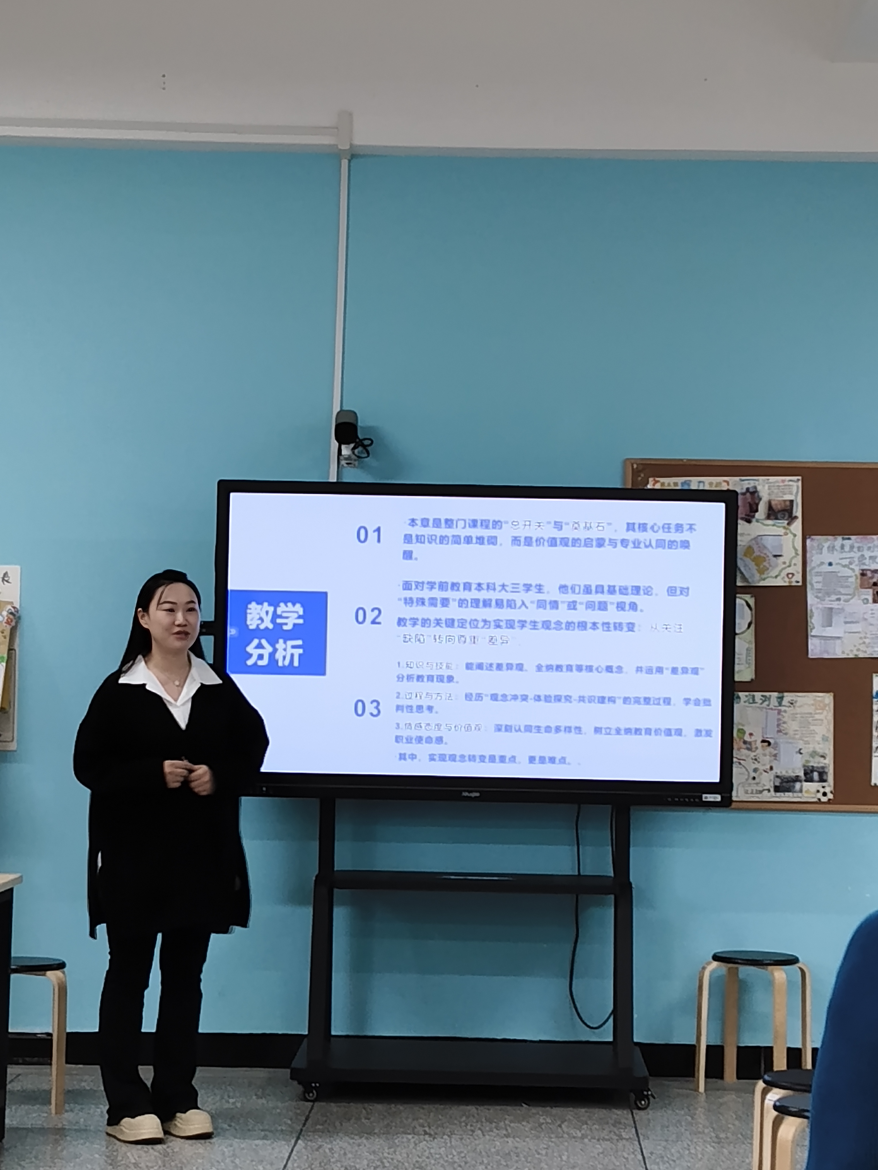 第二位教师宁艾伦以《学前儿童科学教育》为核心展开教学。在说课环节系统解析《学前儿童科学教育(第三版)》教材的特点和优势结合学情确定“知识理解+能力训练+情感激发”三维目标。课程设计,他围绕观察、实验等六种科学教育方法,通过理论讲解、案例分析与模拟授课,让员工掌握方法应用要点,突破“方法整合”与“指导度把控”难点,实现理论与实践的深度衔接。