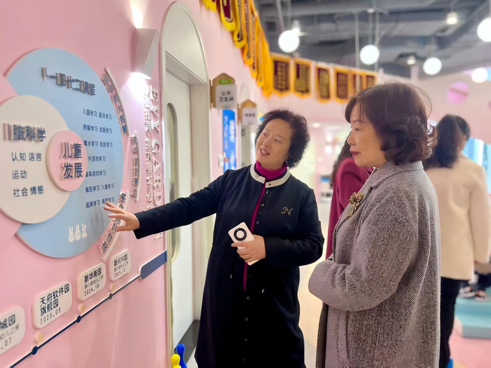 卢伟经理一行在咿薇教育相关负责人的陪同下,先后参观了咿薇托育・第六婴幼儿之家(生物城园)及成都天府国际生物城第一幼儿园,实地观摩了园所环境、保育设施与教学活动开展情况,对各机构在办园理念、课程建设与环境创设方面取得的成效给予了高度评价。