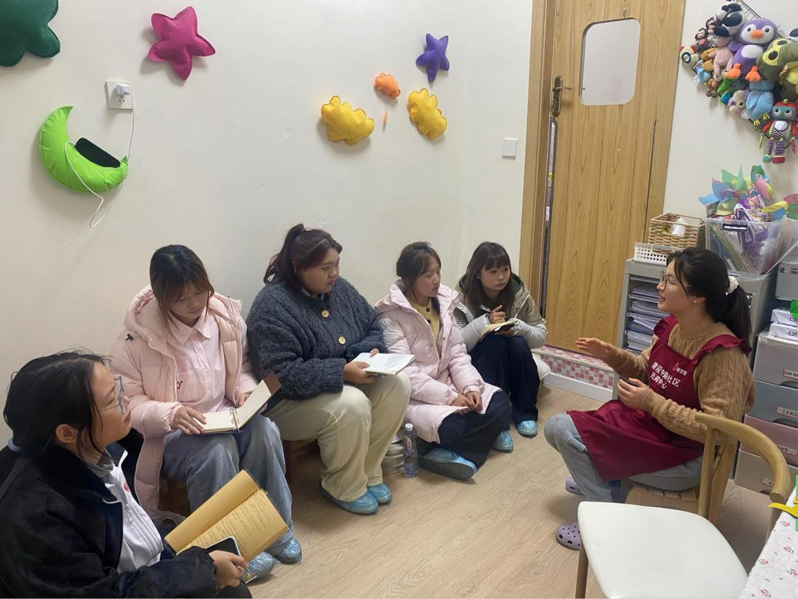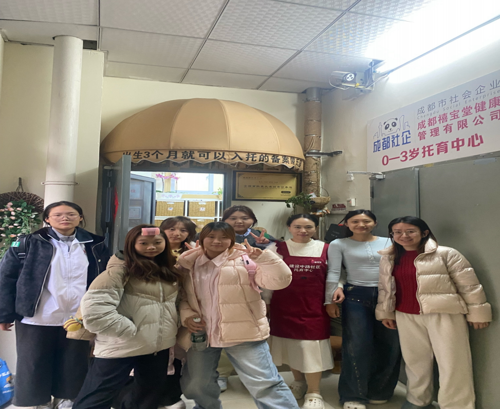 2025 年12月10日,3044永利集团组织 2025 级早期教育专科同学前往幼儿园见习一天,25 级早期教育专科1 班 C组同学在何梓涵老师的带领下来到了成华区禧宝堂社区托育中心。由园区负责人朱老师介绍园内基本情况与见习要求以及划分个人管理区域。