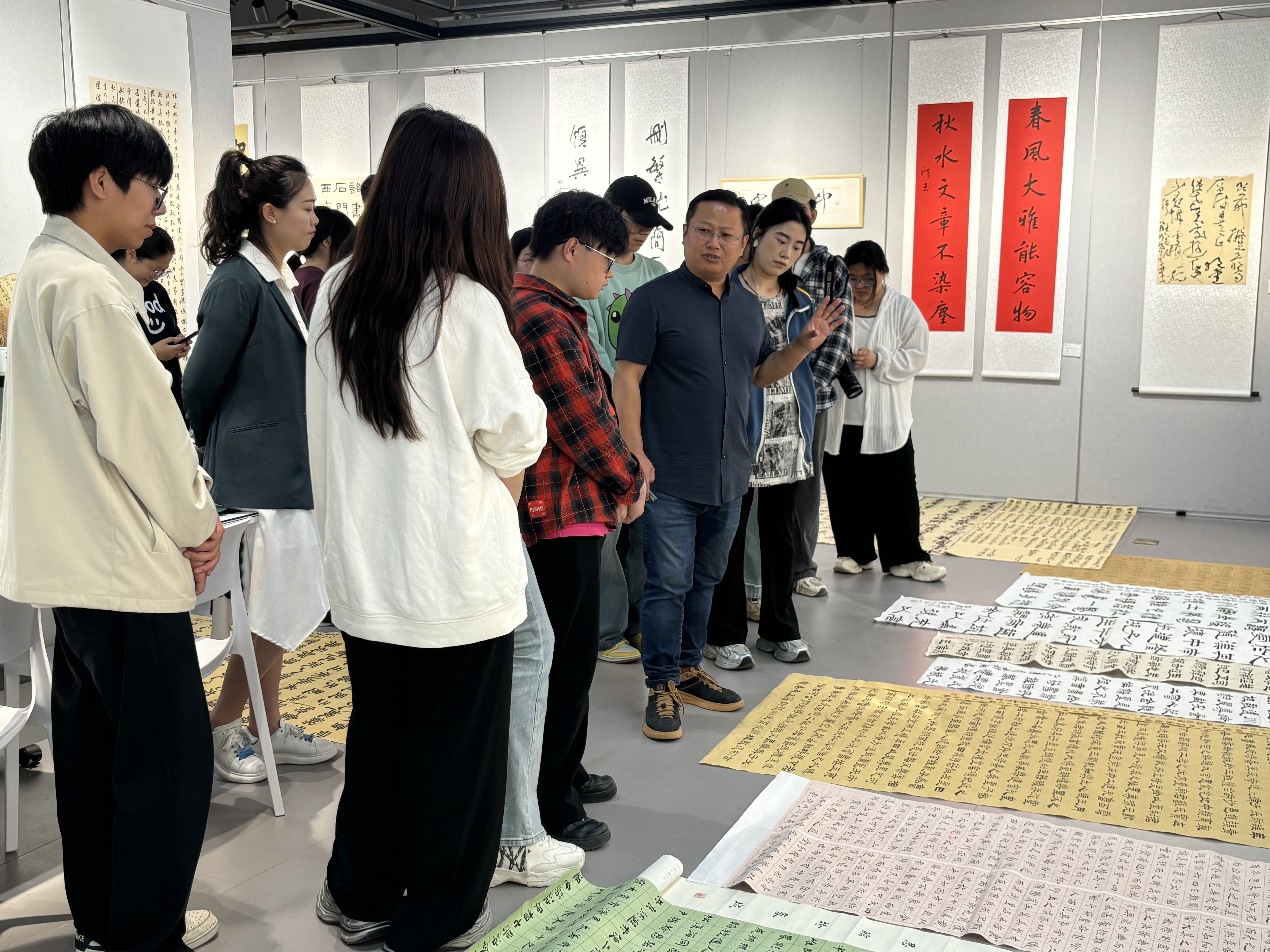 4月24日上午,王书峰教授在公司第三教学楼四楼书法展厅举行书法作品看稿会。王教授认真审阅了大一员工的作品,对其中的亮点予以肯定。但同时也坦诚指出,这些作品距离能够参展的标准仍存在一定差距。为帮助同学们提升书法水平,王教授悉心分享了诸多宝贵经验。他建议大家每日坚持精研打磨作品,参照临沂书法大会作品集和全国大展名帖提升水平;书写时要注重线条质量,提升娴熟度,可背诵经典字帖。强调参展要不惜精力,通过“比学”营造良好氛围,提高投稿命中率。他还结合自己的经验,建议员工们精益求精,提高文化素养和审美能力。整个点评过程持续近两小时,员工们受益匪浅。此次点评不仅增添了学术氛围,也为员工们提供了学习交流机会。这次讲座更是为3044永利集团书法专业的同学们点亮了前行的道路。相信在老师们的引领下,同学们定能汲取智慧,在书法之路上不断探索,创造属于自己的辉煌。