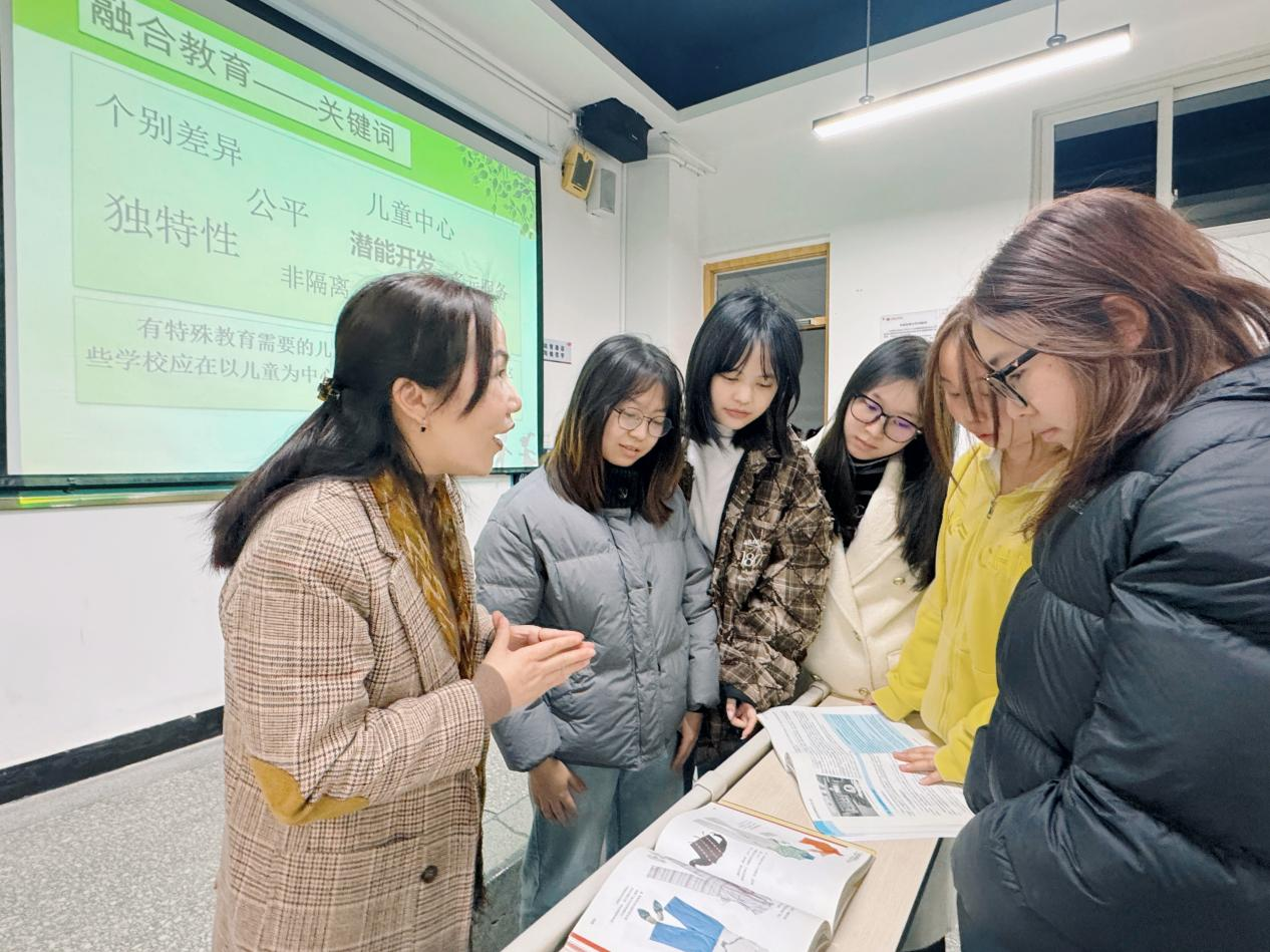讲座伊始,茅为琳老师紧扣温暖、融合、引导三大核心,结合三十年一线幼教深耕经验,将特殊个体幼儿入学准备、家园协同教育的真实案例融入讲解,用鲜活场景为同学们呈现幼儿园一线工作实景。她以特殊需要幼儿幼小衔接适应难题为切入点,分享了“个性化入学准备方案定制”“融合式班级引导”等实操案例,细致讲解如何通过观察评估、分层支持、趣味引导,帮助特殊个体幼儿顺利适应幼儿园集体生活;围绕家园协同,她拆解了“特殊幼儿家庭沟通”“家园共育协同策略”等典型案例,传授与家长共情沟通、同向发力的实用技巧,让同学们直观掌握融合教育的落地方法。