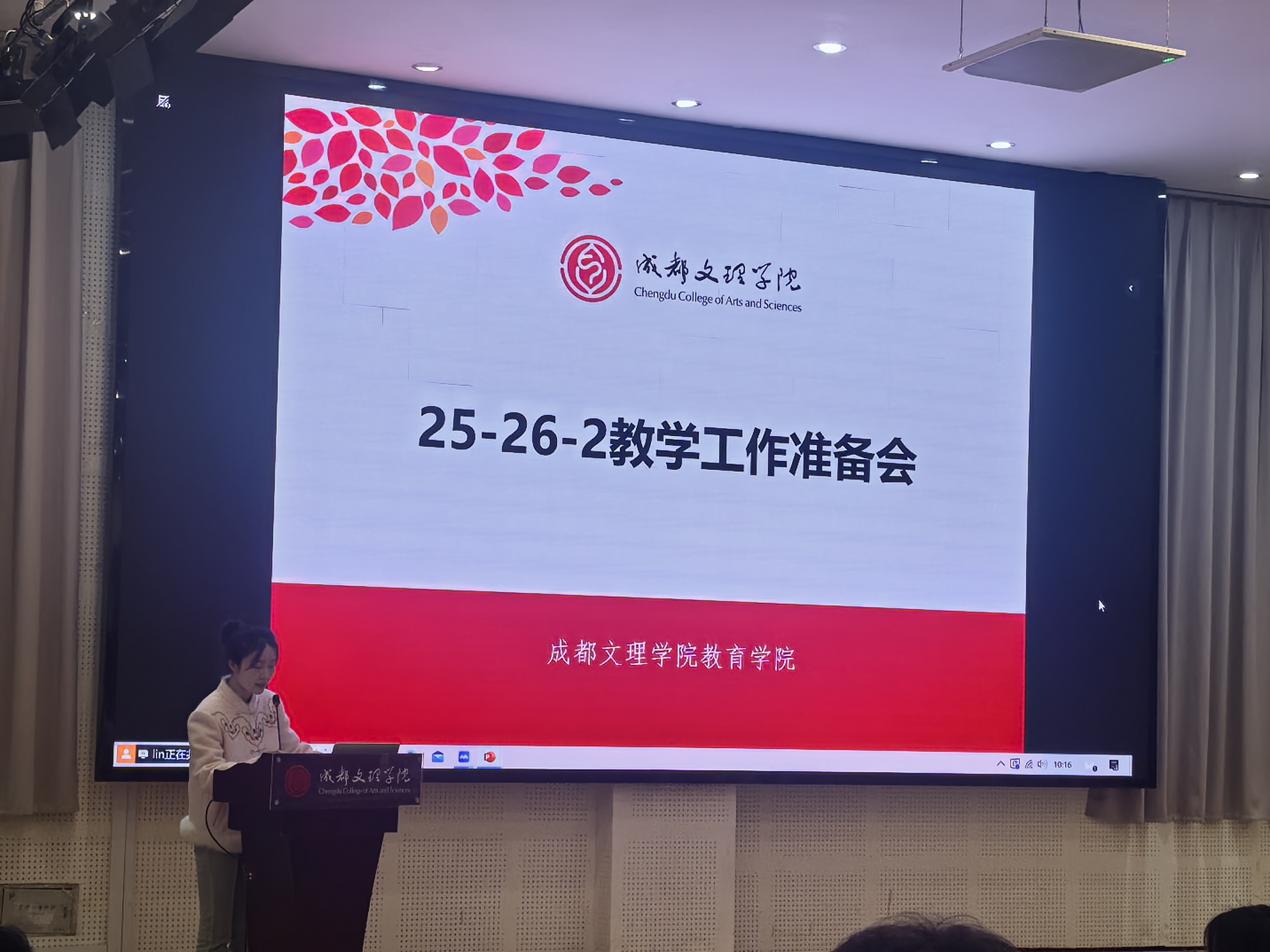 经理助理王和琴全面梳理了本学期教学工作计划,重点介绍了师范类专业认证工作的准备情况和实施方案,强调对标建设、查漏补缺,力争高质量通过认证。